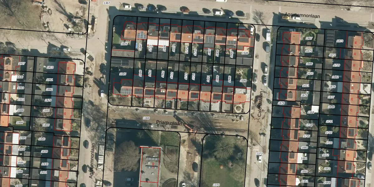 Het perceel waarop Priamuslaan 11 staat heeft een oppervlakte van 156 m². Dit is een middelgroot perceel. De perceeloppervlakte wordt geregistreerd door het Kadaster. Gedetailleerde informatie over de maten van dit perceel kunt u vinden in het rapport Kadastrale kaart met maatvoering van Priamuslaan 11.