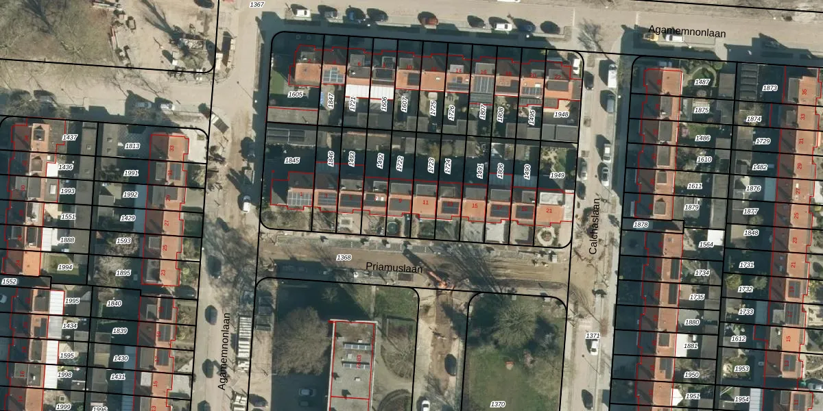 Het perceel waarop Priamuslaan 9 staat heeft een oppervlakte van 156 m². Dit is een middelgroot perceel. De perceeloppervlakte wordt geregistreerd door het Kadaster. Gedetailleerde informatie over de maten van dit perceel kunt u vinden in het rapport Kadastrale kaart met maatvoering van Priamuslaan 9.