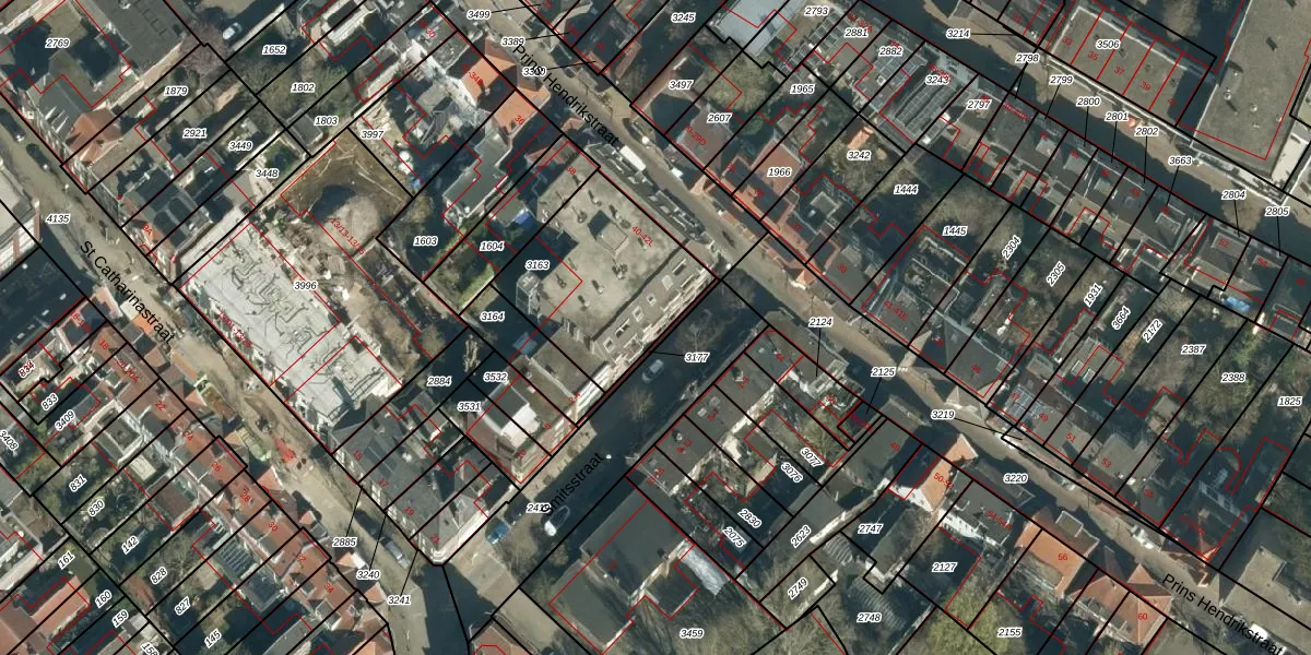 Het perceel waarop Prins Hendrikstraat 42 staat heeft een oppervlakte van 597 m². Dit is een groot perceel. De perceeloppervlakte wordt geregistreerd door het Kadaster. Gedetailleerde informatie over de maten van dit perceel kunt u vinden in het rapport Kadastrale kaart met maatvoering van Prins Hendrikstraat 42.