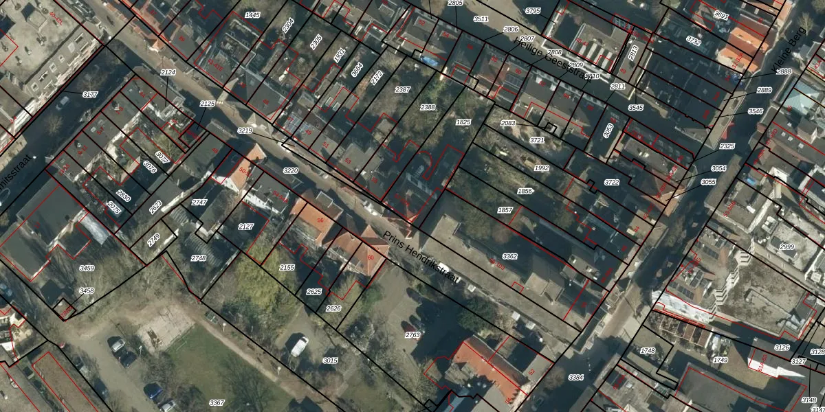 Het perceel waarop Prins Hendrikstraat 57 staat heeft een oppervlakte van 355 m². Dit is een groot perceel. De perceeloppervlakte wordt geregistreerd door het Kadaster. Gedetailleerde informatie over de maten van dit perceel kunt u vinden in het rapport Kadastrale kaart met maatvoering van Prins Hendrikstraat 57.