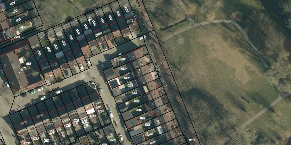 Het perceel waarop Privaspad 21 staat heeft een oppervlakte van 202 m². Dit is een middelgroot perceel. De perceeloppervlakte wordt geregistreerd door het Kadaster. Gedetailleerde informatie over de maten van dit perceel kunt u vinden in het rapport Kadastrale kaart met maatvoering van Privaspad 21.