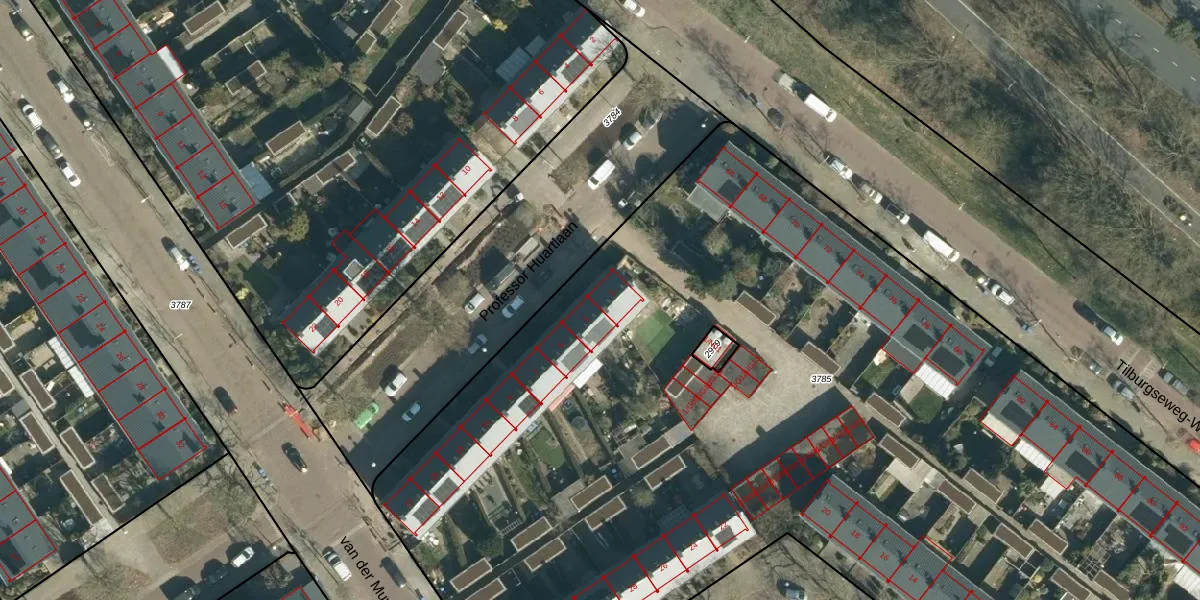 Professor Huartlaan 1 is gelegen op kadastraal perceel STR03C3785. Deze kadastrale aanduiding is uniek en wordt gebruikt door het Kadaster om eigendomsrechten en andere zakelijke rechten vast te leggen. Het perceel maakt onderdeel uit van de kadastrale gemeente Strijp.