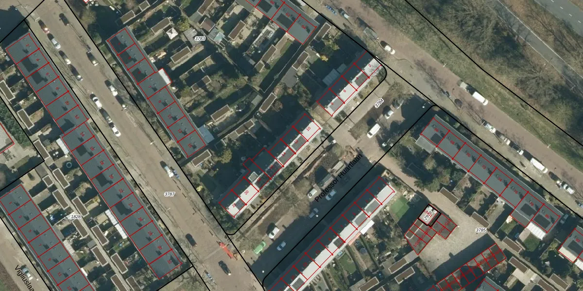Professor Huartlaan 12 is gelegen op kadastraal perceel STR03C3783. Deze kadastrale aanduiding is uniek en wordt gebruikt door het Kadaster om eigendomsrechten en andere zakelijke rechten vast te leggen. Het perceel maakt onderdeel uit van de kadastrale gemeente Strijp.