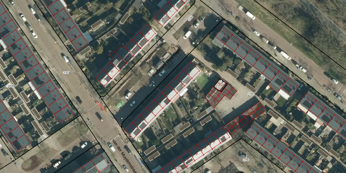 Professor Huartlaan 5 is gelegen op kadastraal perceel STR03C3785. Deze kadastrale aanduiding is uniek en wordt gebruikt door het Kadaster om eigendomsrechten en andere zakelijke rechten vast te leggen. Het perceel maakt onderdeel uit van de kadastrale gemeente Strijp.