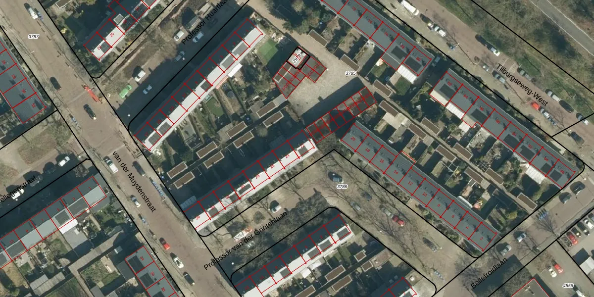 Professor van der Grintenlaan 22 is gelegen op kadastraal perceel STR03C3785. Deze kadastrale aanduiding is uniek en wordt gebruikt door het Kadaster om eigendomsrechten en andere zakelijke rechten vast te leggen. Het perceel maakt onderdeel uit van de kadastrale gemeente Strijp.