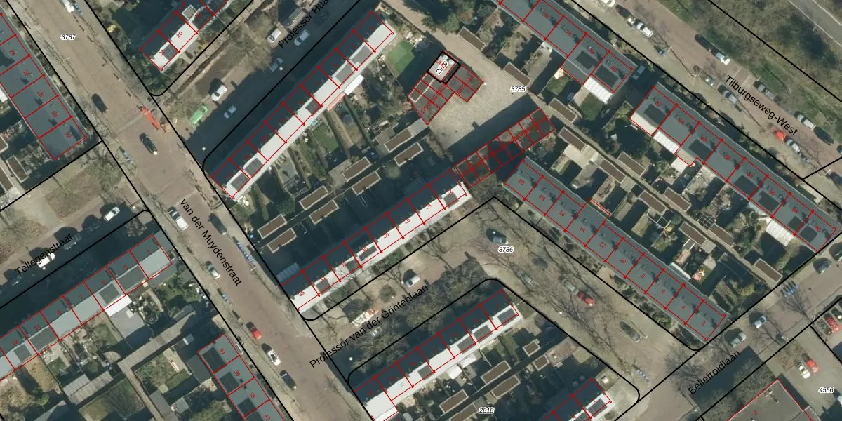 Professor van der Grintenlaan 24 is gelegen op kadastraal perceel STR03C3785. Deze kadastrale aanduiding is uniek en wordt gebruikt door het Kadaster om eigendomsrechten en andere zakelijke rechten vast te leggen. Het perceel maakt onderdeel uit van de kadastrale gemeente Strijp.