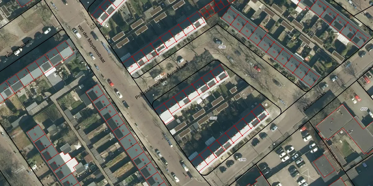 Professor van der Grintenlaan 7 is gelegen op kadastraal perceel STR03C2818. Deze kadastrale aanduiding is uniek en wordt gebruikt door het Kadaster om eigendomsrechten en andere zakelijke rechten vast te leggen. Het perceel maakt onderdeel uit van de kadastrale gemeente Strijp.