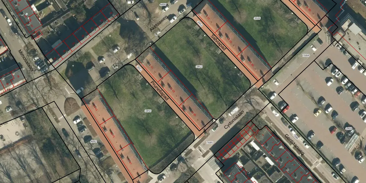 Prunellapad 23 is gelegen op kadastraal perceel STM00D3452. Deze kadastrale aanduiding is uniek en wordt gebruikt door het Kadaster om eigendomsrechten en andere zakelijke rechten vast te leggen. Het perceel maakt onderdeel uit van de kadastrale gemeente Stratum.