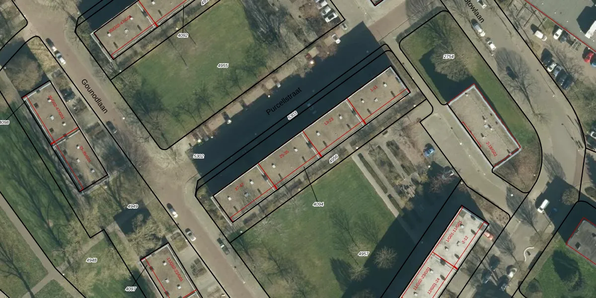Het perceel waarop Purcellstraat 29 staat heeft een oppervlakte van 820 m². Dit is een groot perceel. De perceeloppervlakte wordt geregistreerd door het Kadaster. Gedetailleerde informatie over de maten van dit perceel kunt u vinden in het rapport Kadastrale kaart met maatvoering van Purcellstraat 29.