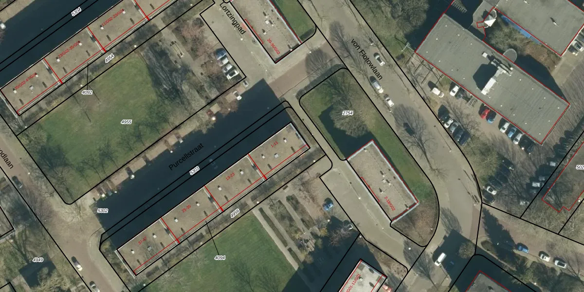 Het perceel waarop Purcellstraat 9 staat heeft een oppervlakte van 820 m². Dit is een groot perceel. De perceeloppervlakte wordt geregistreerd door het Kadaster. Gedetailleerde informatie over de maten van dit perceel kunt u vinden in het rapport Kadastrale kaart met maatvoering van Purcellstraat 9.