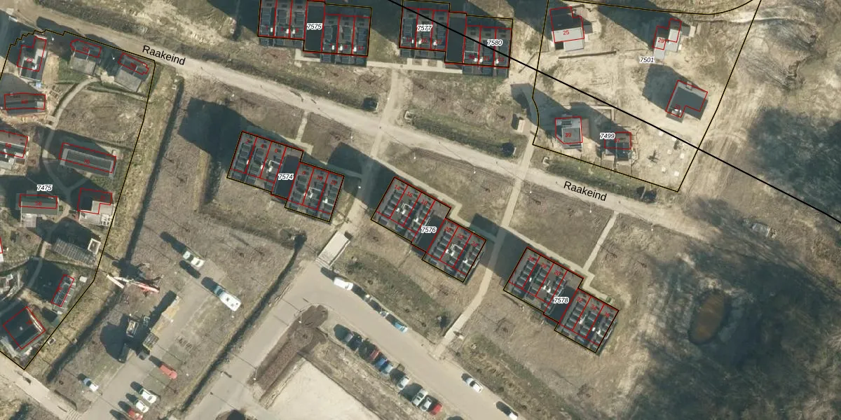 Raakeind 18 is gelegen op kadastraal perceel WSL01W7576. Deze kadastrale aanduiding is uniek en wordt gebruikt door het Kadaster om eigendomsrechten en andere zakelijke rechten vast te leggen. Het perceel maakt onderdeel uit van de kadastrale gemeente Woensel.