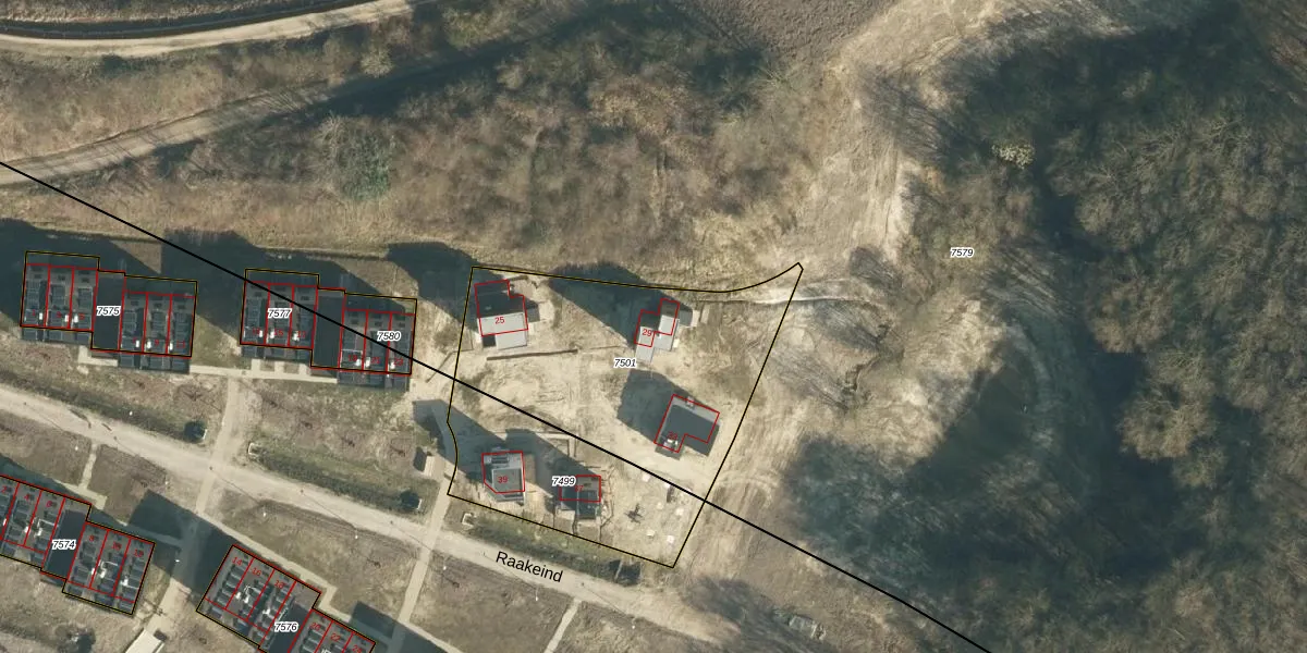 Raakeind 29 is gelegen op kadastraal perceel WSL01W7501. Deze kadastrale aanduiding is uniek en wordt gebruikt door het Kadaster om eigendomsrechten en andere zakelijke rechten vast te leggen. Het perceel maakt onderdeel uit van de kadastrale gemeente Woensel.