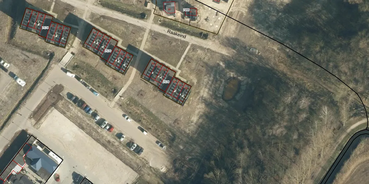 Raakeind 36 is gelegen op kadastraal perceel WSL01W7578. Deze kadastrale aanduiding is uniek en wordt gebruikt door het Kadaster om eigendomsrechten en andere zakelijke rechten vast te leggen. Het perceel maakt onderdeel uit van de kadastrale gemeente Woensel.