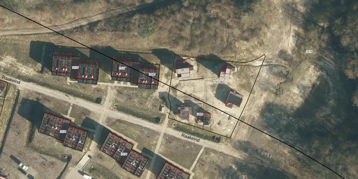 Raakeind 41 is gelegen op kadastraal perceel WSL01W7501. Deze kadastrale aanduiding is uniek en wordt gebruikt door het Kadaster om eigendomsrechten en andere zakelijke rechten vast te leggen. Het perceel maakt onderdeel uit van de kadastrale gemeente Woensel.