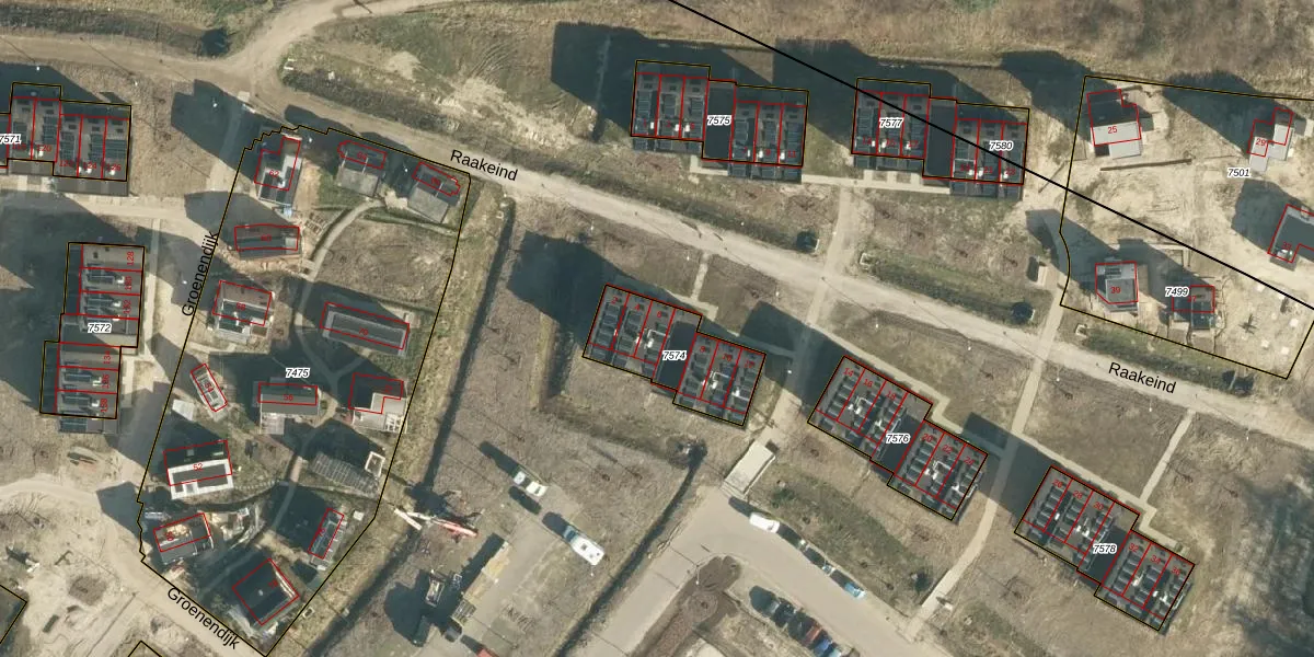 Raakeind 6 is gelegen op kadastraal perceel WSL01W7574. Deze kadastrale aanduiding is uniek en wordt gebruikt door het Kadaster om eigendomsrechten en andere zakelijke rechten vast te leggen. Het perceel maakt onderdeel uit van de kadastrale gemeente Woensel.