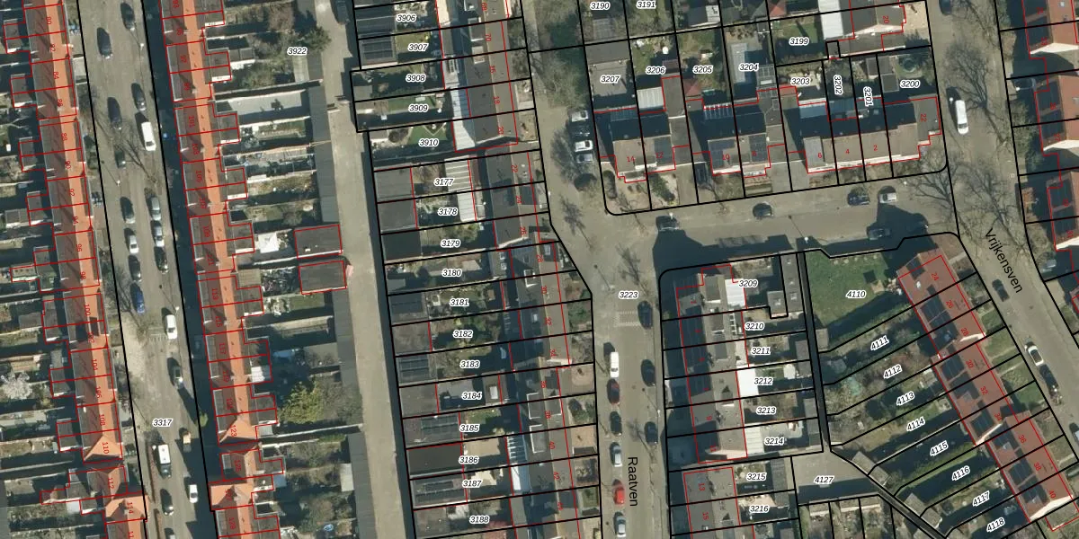 Het perceel waarop Raatven 28 staat heeft een oppervlakte van 197 m². Dit is een middelgroot perceel. De perceeloppervlakte wordt geregistreerd door het Kadaster. Gedetailleerde informatie over de maten van dit perceel kunt u vinden in het rapport Kadastrale kaart met maatvoering van Raatven 28.