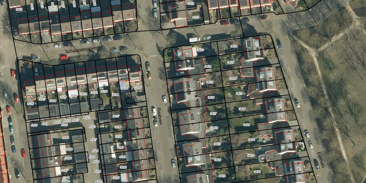 Het perceel waarop Raatven 31 staat heeft een oppervlakte van 264 m². Dit is een middelgroot perceel. De perceeloppervlakte wordt geregistreerd door het Kadaster. Gedetailleerde informatie over de maten van dit perceel kunt u vinden in het rapport Kadastrale kaart met maatvoering van Raatven 31.