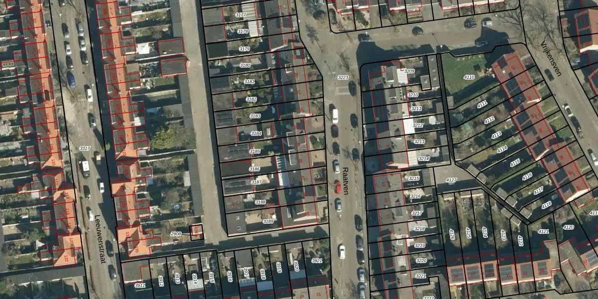 Het perceel waarop Raatven 38 staat heeft een oppervlakte van 205 m². Dit is een middelgroot perceel. De perceeloppervlakte wordt geregistreerd door het Kadaster. Gedetailleerde informatie over de maten van dit perceel kunt u vinden in het rapport Kadastrale kaart met maatvoering van Raatven 38.