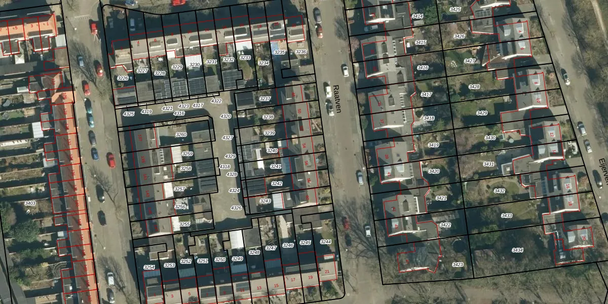 Het perceel waarop Raatven 54 staat heeft een oppervlakte van 156 m². Dit is een middelgroot perceel. De perceeloppervlakte wordt geregistreerd door het Kadaster. Gedetailleerde informatie over de maten van dit perceel kunt u vinden in het rapport Kadastrale kaart met maatvoering van Raatven 54.