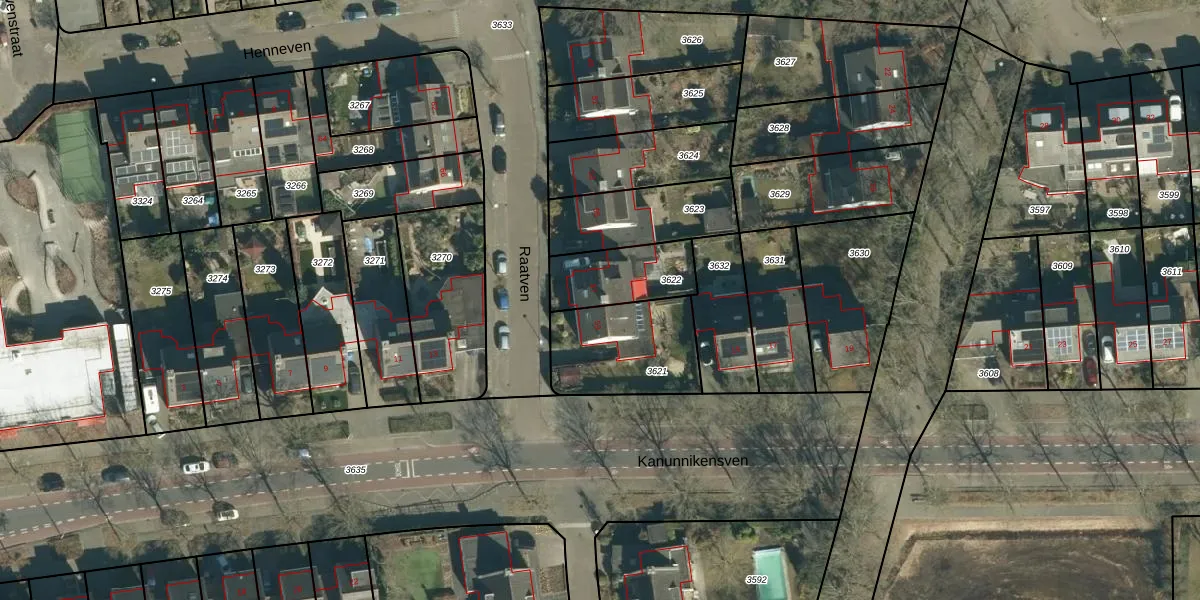 Gebruik de zoekbalk of klik op een perceel voor informatie over de adressen binnen dit perceel.