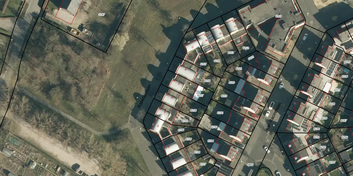 Het perceel waarop Rabelaislaan 41 staat heeft een oppervlakte van 264 m². Dit is een middelgroot perceel. De perceeloppervlakte wordt geregistreerd door het Kadaster. Gedetailleerde informatie over de maten van dit perceel kunt u vinden in het rapport Kadastrale kaart met maatvoering van Rabelaislaan 41.
