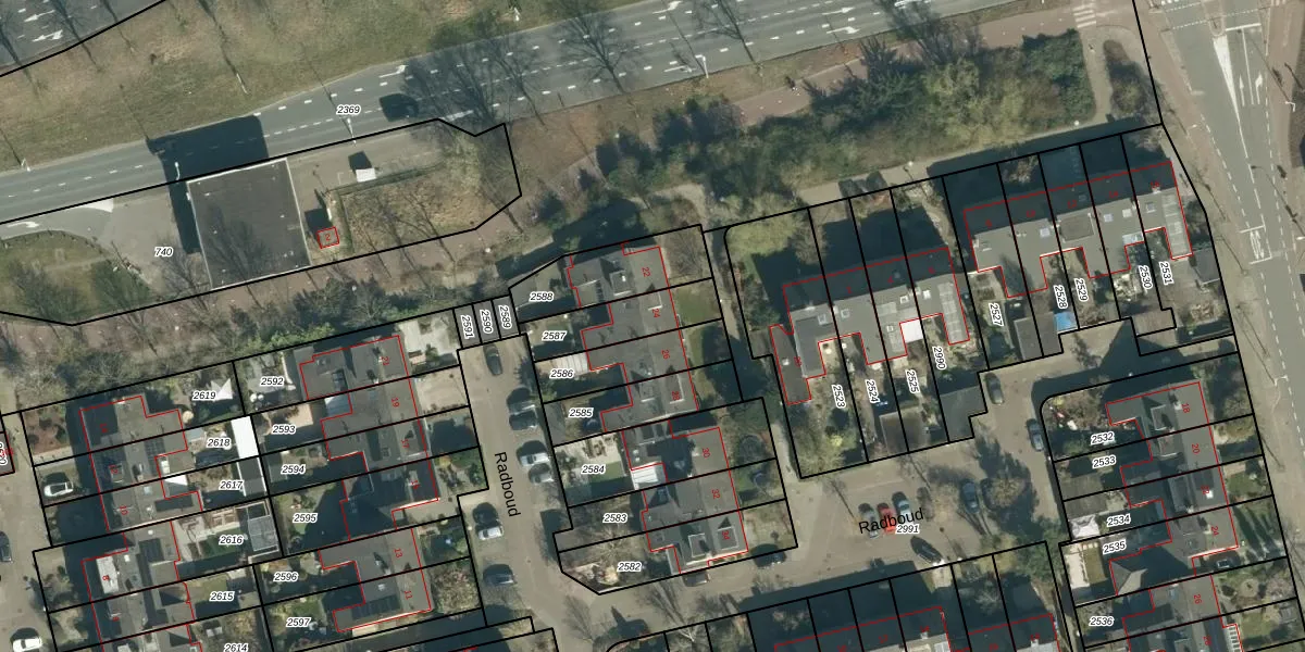 Het perceel waarop Radboud 24 staat heeft een oppervlakte van 193 m². Dit is een middelgroot perceel. De perceeloppervlakte wordt geregistreerd door het Kadaster. Gedetailleerde informatie over de maten van dit perceel kunt u vinden in het rapport Kadastrale kaart met maatvoering van Radboud 24.