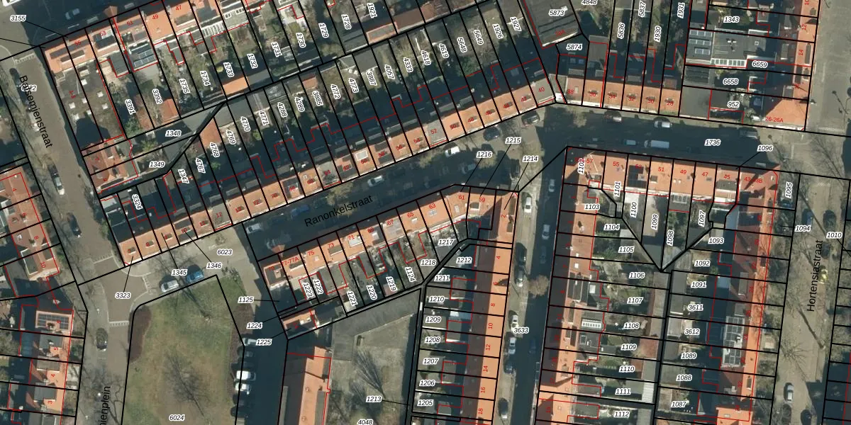 Het perceel waarop Ranonkelstraat 63 staat heeft een oppervlakte van 87 m². Dit is een klein perceel. De perceeloppervlakte wordt geregistreerd door het Kadaster. Gedetailleerde informatie over de maten van dit perceel kunt u vinden in het rapport Kadastrale kaart met maatvoering van Ranonkelstraat 63.