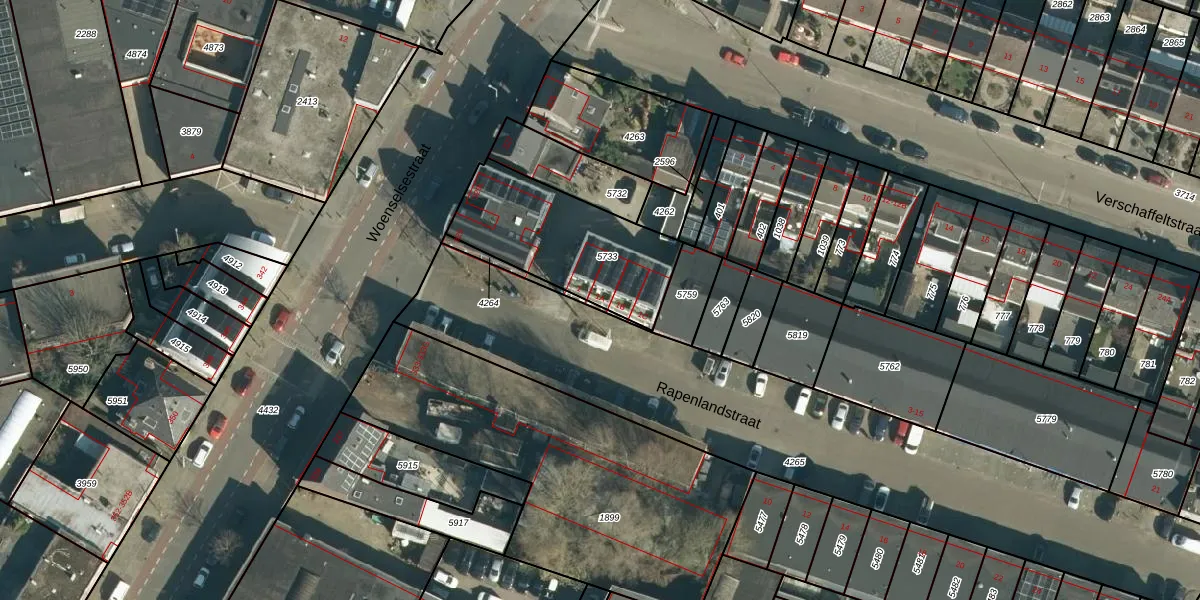 Rapenlandstraat 1-A is gelegen op kadastraal perceel WSL01L5733. Deze kadastrale aanduiding is uniek en wordt gebruikt door het Kadaster om eigendomsrechten en andere zakelijke rechten vast te leggen. Het perceel maakt onderdeel uit van de kadastrale gemeente Woensel.