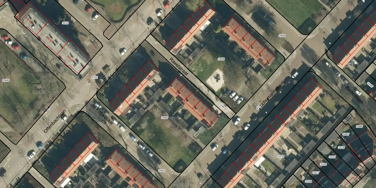 Het perceel waarop Ravelstraat 7 staat heeft een oppervlakte van 2474 m². Dit is een zeer groot perceel. De perceeloppervlakte wordt geregistreerd door het Kadaster. Gedetailleerde informatie over de maten van dit perceel kunt u vinden in het rapport Kadastrale kaart met maatvoering van Ravelstraat 7.