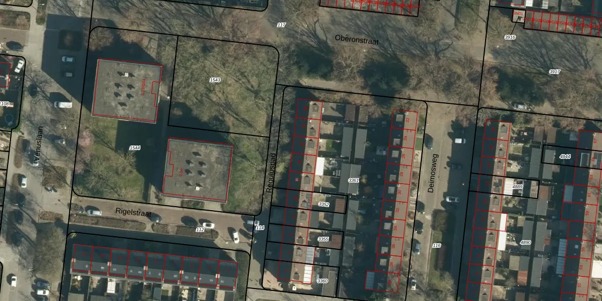 Het perceel waarop Reguluspad 16 staat heeft een oppervlakte van 2714 m². Dit is een zeer groot perceel. De perceeloppervlakte wordt geregistreerd door het Kadaster. Gedetailleerde informatie over de maten van dit perceel kunt u vinden in het rapport Kadastrale kaart met maatvoering van Reguluspad 16.