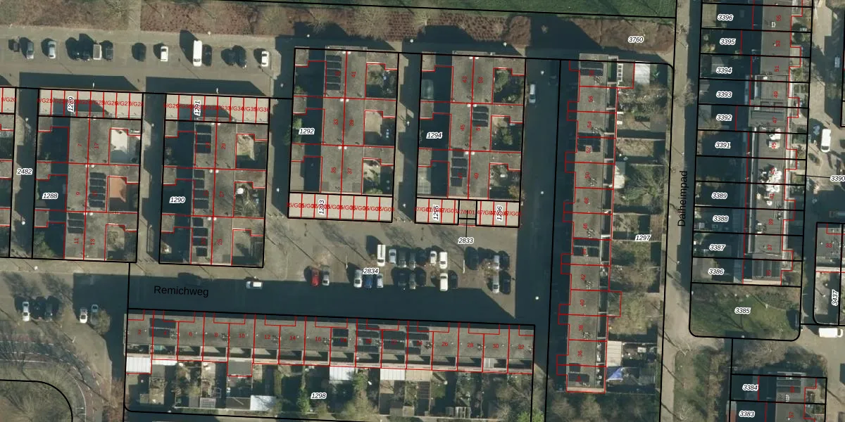 Remichweg 47-G01 is gelegen op kadastraal perceel WSL01P1295. Deze kadastrale aanduiding is uniek en wordt gebruikt door het Kadaster om eigendomsrechten en andere zakelijke rechten vast te leggen. Het perceel maakt onderdeel uit van de kadastrale gemeente Woensel.
