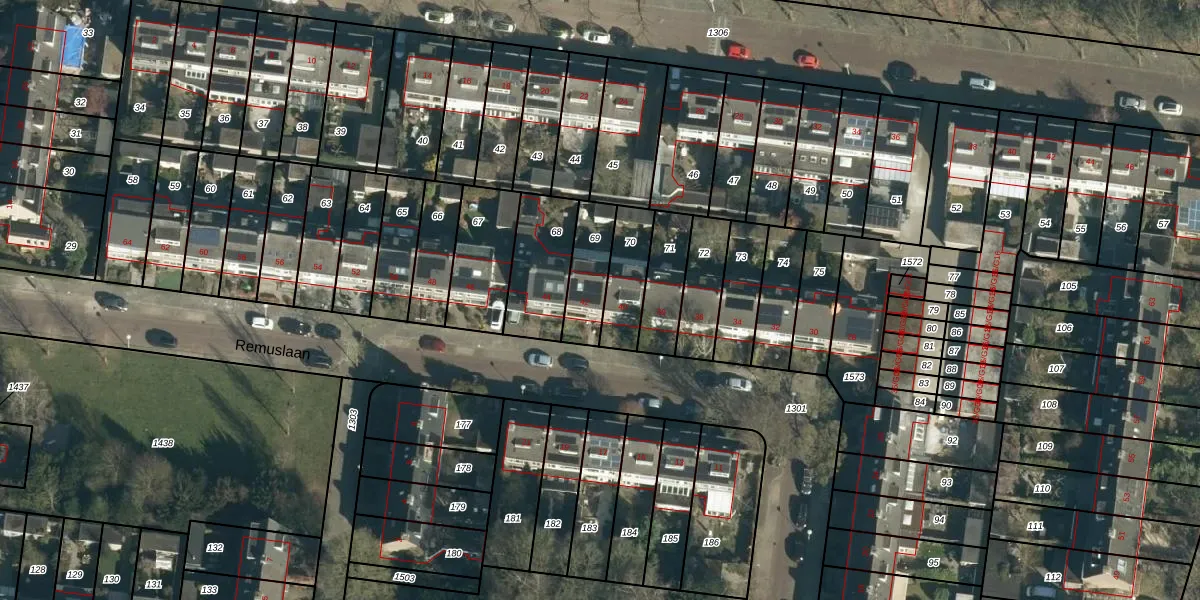 Het perceel waarop Remuslaan 42 staat heeft een oppervlakte van 151 m². Dit is een middelgroot perceel. De perceeloppervlakte wordt geregistreerd door het Kadaster. Gedetailleerde informatie over de maten van dit perceel kunt u vinden in het rapport Kadastrale kaart met maatvoering van Remuslaan 42.