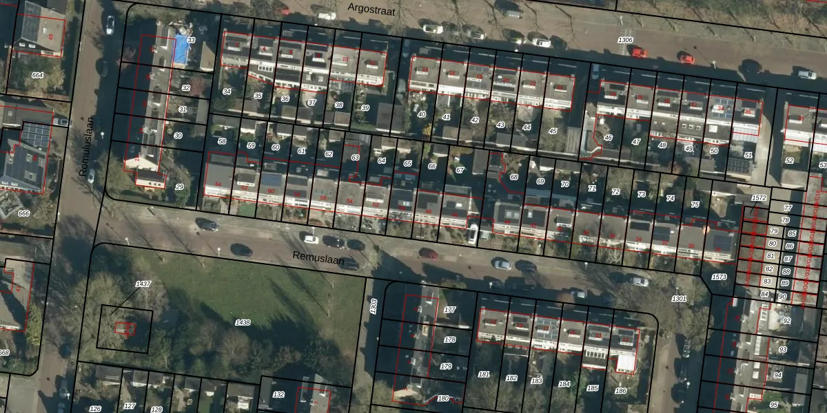 Het perceel waarop Remuslaan 50 staat heeft een oppervlakte van 151 m². Dit is een middelgroot perceel. De perceeloppervlakte wordt geregistreerd door het Kadaster. Gedetailleerde informatie over de maten van dit perceel kunt u vinden in het rapport Kadastrale kaart met maatvoering van Remuslaan 50.