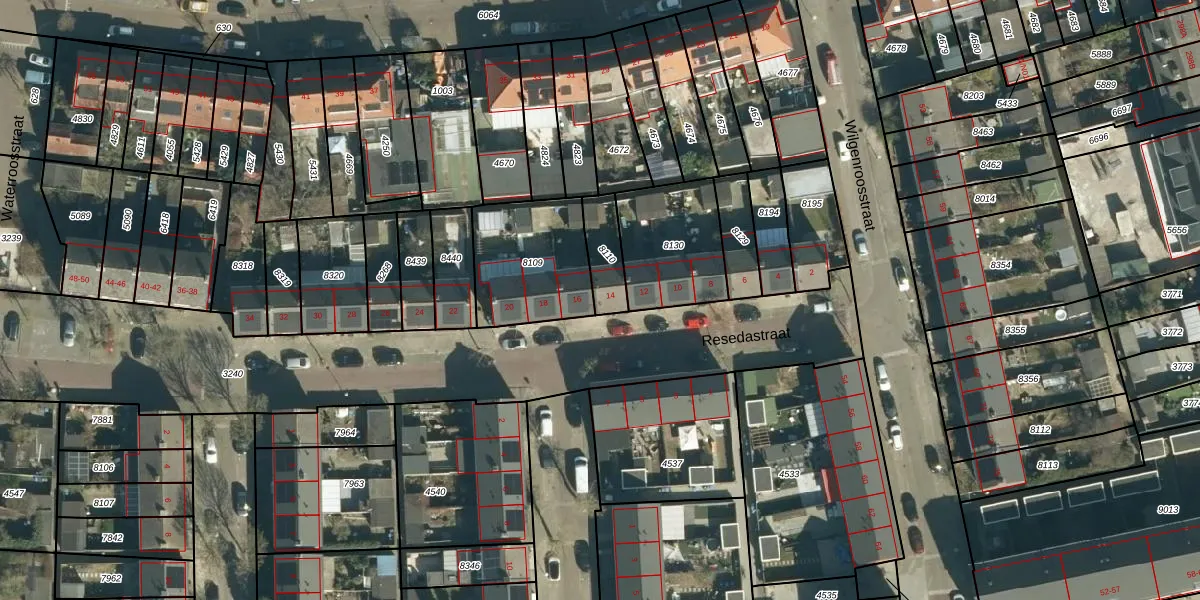 Het perceel waarop Resedastraat 14 staat heeft een oppervlakte van 112 m². Dit is een middelgroot perceel. De perceeloppervlakte wordt geregistreerd door het Kadaster. Gedetailleerde informatie over de maten van dit perceel kunt u vinden in het rapport Kadastrale kaart met maatvoering van Resedastraat 14.