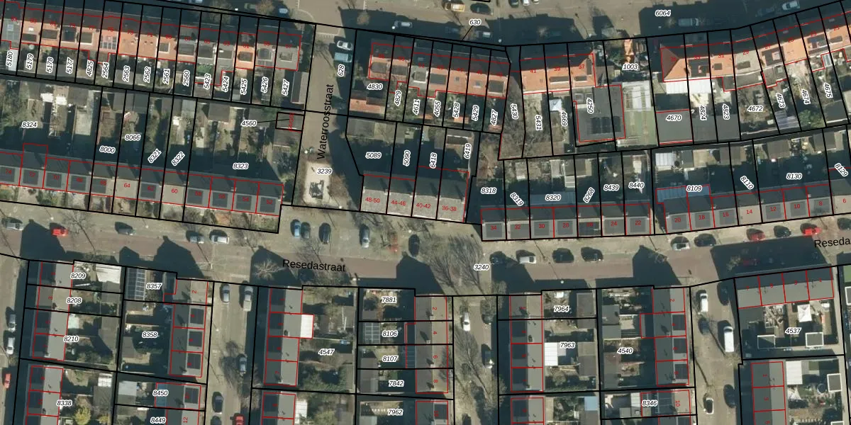Resedastraat 42 is gelegen op kadastraal perceel STM00D6418. Deze kadastrale aanduiding is uniek en wordt gebruikt door het Kadaster om eigendomsrechten en andere zakelijke rechten vast te leggen. Het perceel maakt onderdeel uit van de kadastrale gemeente Stratum.