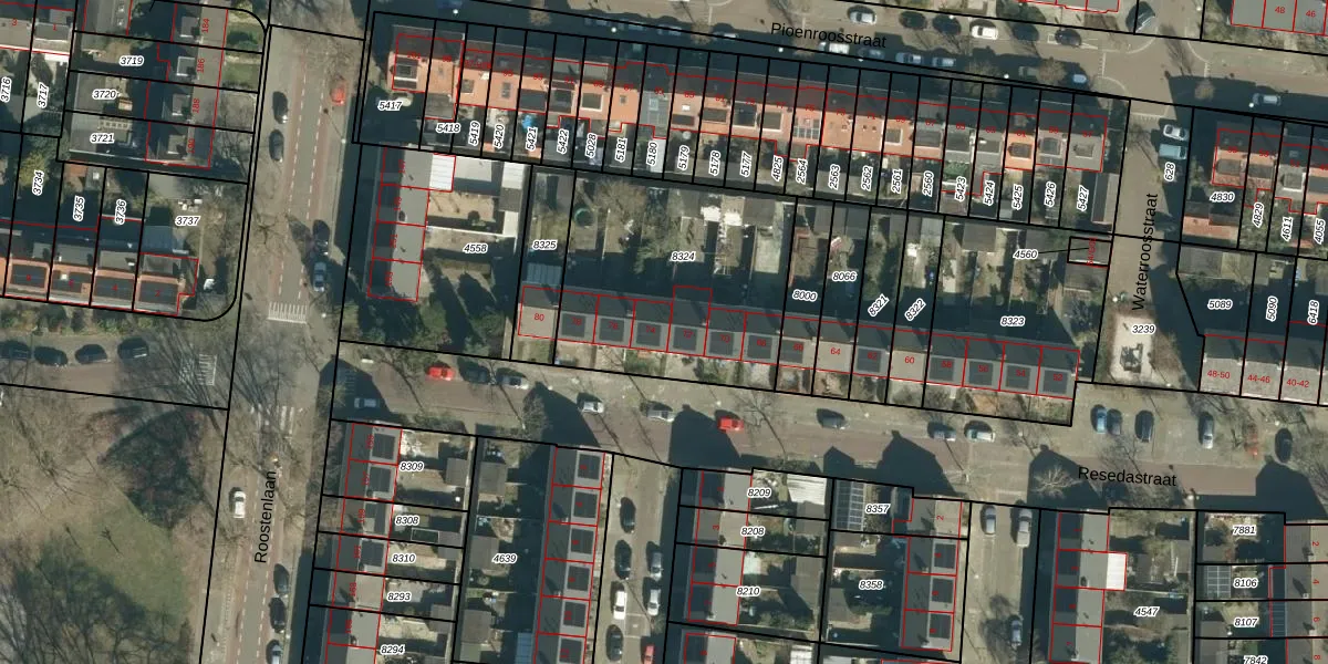 Het perceel waarop Resedastraat 74 staat heeft een oppervlakte van 994 m². Dit is een groot perceel. De perceeloppervlakte wordt geregistreerd door het Kadaster. Gedetailleerde informatie over de maten van dit perceel kunt u vinden in het rapport Kadastrale kaart met maatvoering van Resedastraat 74.