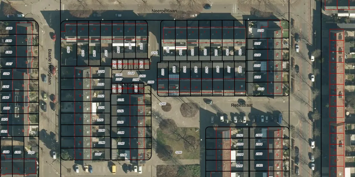 Gebruik de zoekbalk of klik op een perceel voor informatie over de adressen binnen dit perceel.