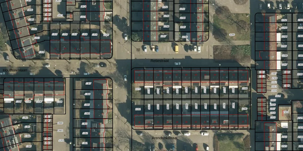 Retiestraat 33 is gelegen op kadastraal perceel WSL01M2278. Deze kadastrale aanduiding is uniek en wordt gebruikt door het Kadaster om eigendomsrechten en andere zakelijke rechten vast te leggen. Het perceel maakt onderdeel uit van de kadastrale gemeente Woensel.