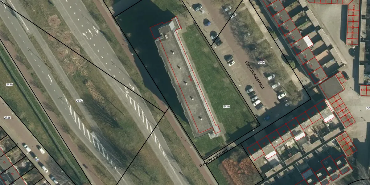 Reynhovestraat 92 is gelegen op kadastraal perceel WSL01P2449. Deze kadastrale aanduiding is uniek en wordt gebruikt door het Kadaster om eigendomsrechten en andere zakelijke rechten vast te leggen. Het perceel maakt onderdeel uit van de kadastrale gemeente Woensel.