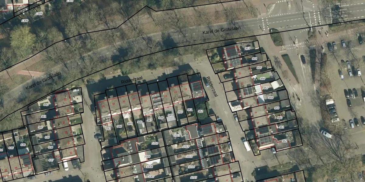 Gebruik de zoekbalk of klik op een perceel voor informatie over de adressen binnen dit perceel.