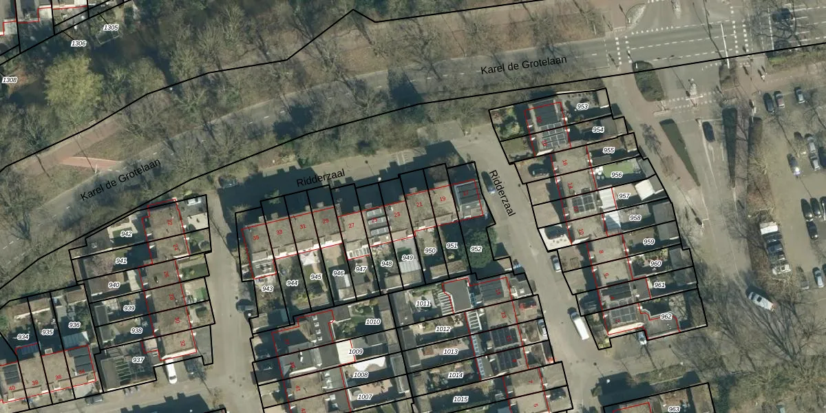 Het perceel waarop Ridderzaal 21 staat heeft een oppervlakte van 156 m². Dit is een middelgroot perceel. De perceeloppervlakte wordt geregistreerd door het Kadaster. Gedetailleerde informatie over de maten van dit perceel kunt u vinden in het rapport Kadastrale kaart met maatvoering van Ridderzaal 21.