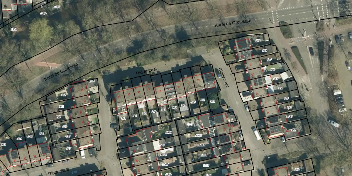 Het perceel waarop Ridderzaal 23 staat heeft een oppervlakte van 151 m². Dit is een middelgroot perceel. De perceeloppervlakte wordt geregistreerd door het Kadaster. Gedetailleerde informatie over de maten van dit perceel kunt u vinden in het rapport Kadastrale kaart met maatvoering van Ridderzaal 23.