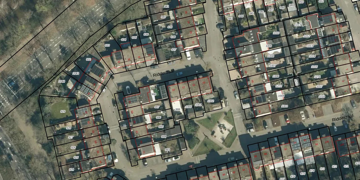 Ridderzaal 57 is gelegen op kadastraal perceel GTL01F1000. Deze kadastrale aanduiding is uniek en wordt gebruikt door het Kadaster om eigendomsrechten en andere zakelijke rechten vast te leggen. Het perceel maakt onderdeel uit van de kadastrale gemeente Gestel.