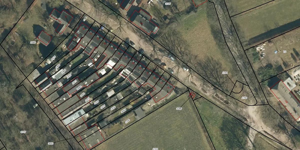 Het perceel waarop Rielsedijk 31 staat heeft een oppervlakte van 370 m². Dit is een groot perceel. De perceeloppervlakte wordt geregistreerd door het Kadaster. Gedetailleerde informatie over de maten van dit perceel kunt u vinden in het rapport Kadastrale kaart met maatvoering van Rielsedijk 31.