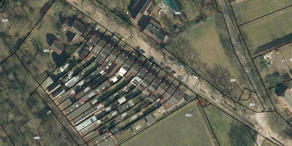 Het perceel waarop Rielsedijk 35 staat heeft een oppervlakte van 350 m². Dit is een groot perceel. De perceeloppervlakte wordt geregistreerd door het Kadaster. Gedetailleerde informatie over de maten van dit perceel kunt u vinden in het rapport Kadastrale kaart met maatvoering van Rielsedijk 35.