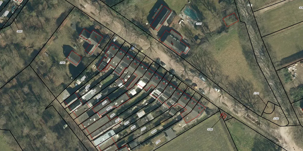 Het perceel waarop Rielsedijk 39 staat heeft een oppervlakte van 335 m². Dit is een groot perceel. De perceeloppervlakte wordt geregistreerd door het Kadaster. Gedetailleerde informatie over de maten van dit perceel kunt u vinden in het rapport Kadastrale kaart met maatvoering van Rielsedijk 39.