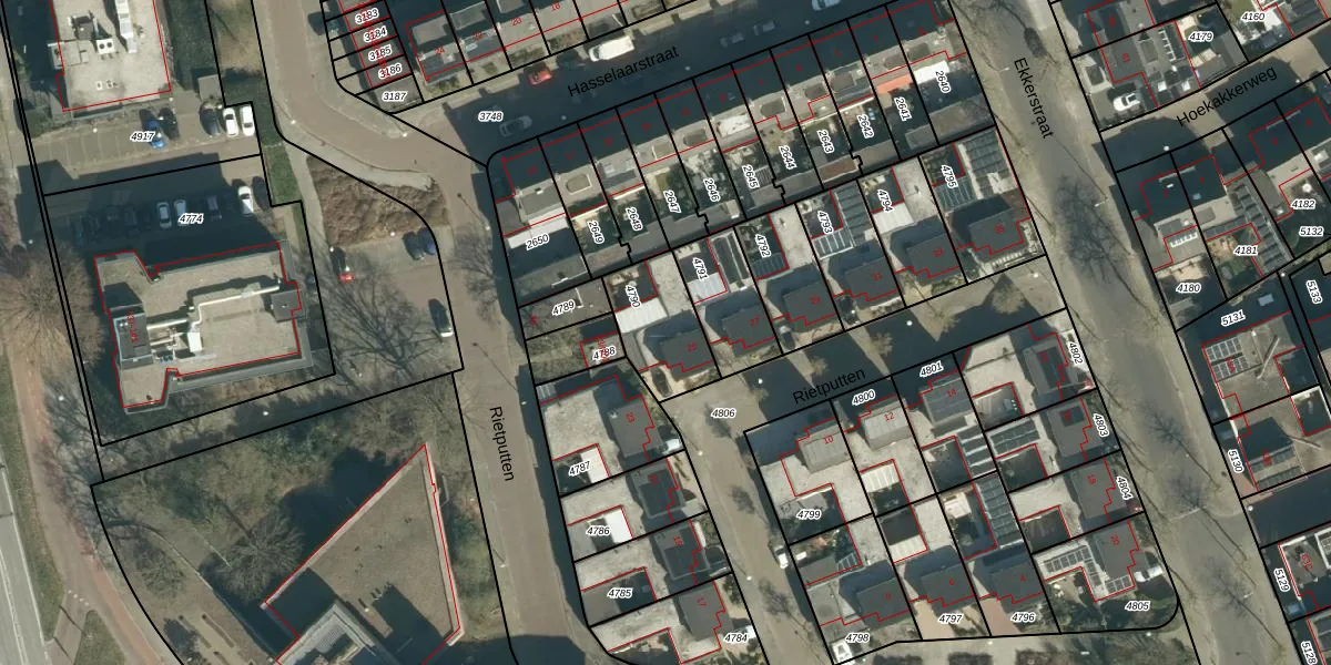 Gebruik de zoekbalk of klik op een perceel voor informatie over de adressen binnen dit perceel.