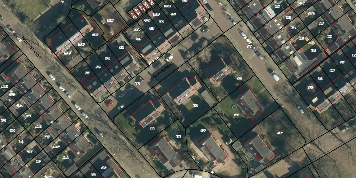Rietveldlaan 4 is gelegen op kadastraal perceel WSL01P572. Deze kadastrale aanduiding is uniek en wordt gebruikt door het Kadaster om eigendomsrechten en andere zakelijke rechten vast te leggen. Het perceel maakt onderdeel uit van de kadastrale gemeente Woensel.