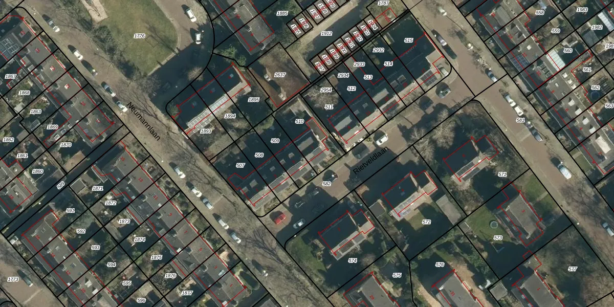 Rietveldlaan 7 is gelegen op kadastraal perceel WSL01P510. Deze kadastrale aanduiding is uniek en wordt gebruikt door het Kadaster om eigendomsrechten en andere zakelijke rechten vast te leggen. Het perceel maakt onderdeel uit van de kadastrale gemeente Woensel.