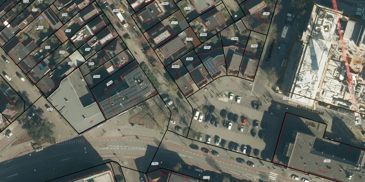 Gebruik de zoekbalk of klik op een perceel voor informatie over de adressen binnen dit perceel.